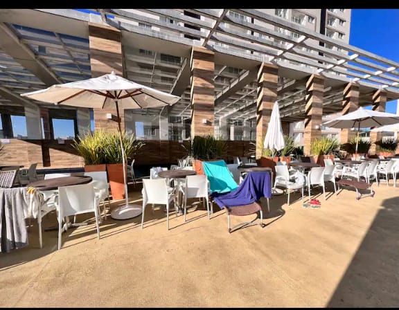 Nosso espaçoso apartamento de 3 quartos é uma escolha preferida entre os hóspedes, com uma pontuação perfeita de 5 estrelas. Localizado em um novo empreendimento de luxo com lazer completo, você terá acesso a 6 piscinas, sauna, salão de jogos, academia e muito mais.
